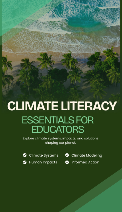 The Climate Literacy course introduces learners to Earth’s climate systems, human influences, and global impacts. Through data-driven exploration, interactive investigations, and real-world contexts, the course builds climate literacy and empowers informed action toward resilience and sustainability.