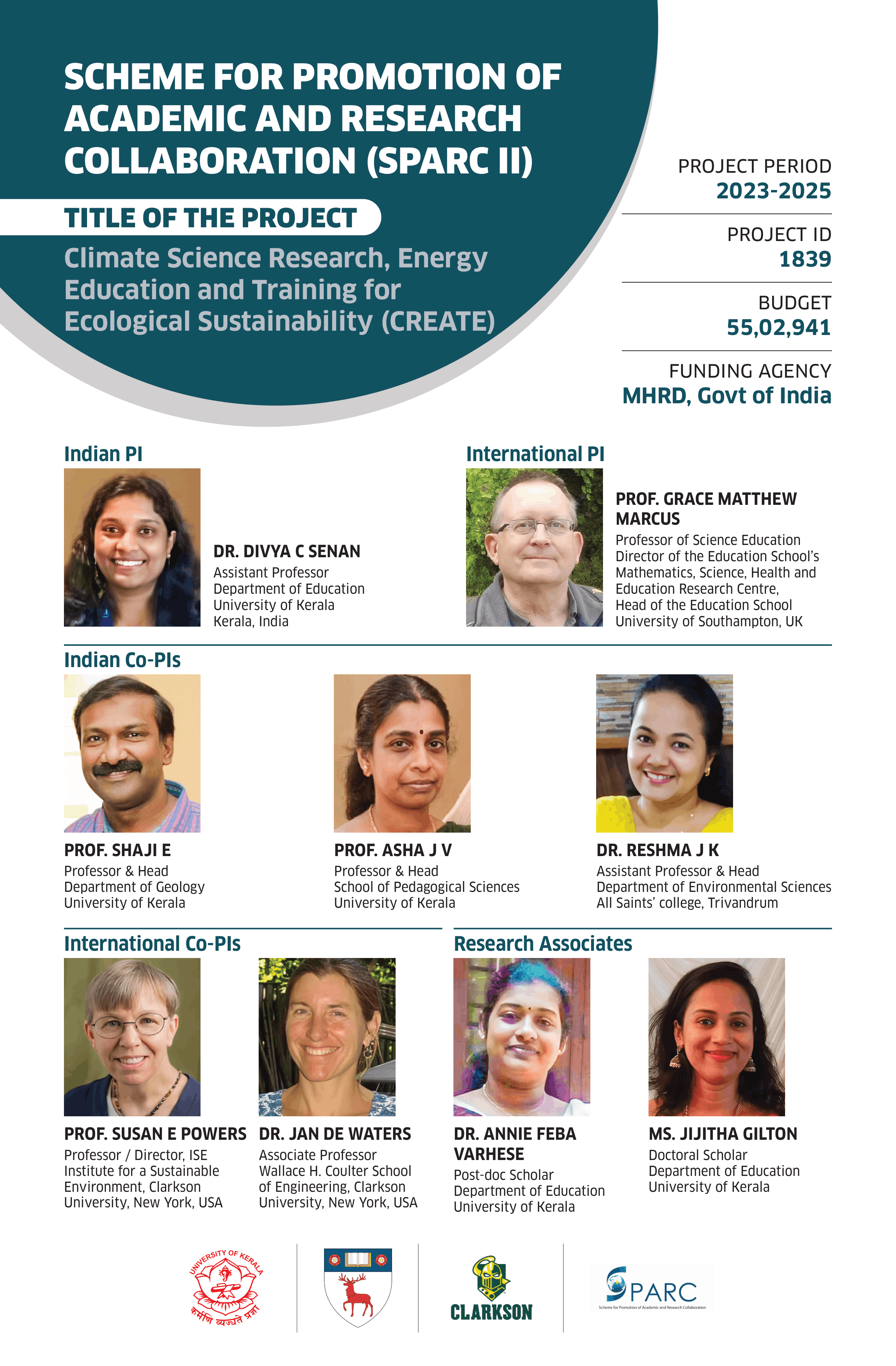 SPARC II funded CREATE project promoting international collaboration in climate science research, energy education, and ecological sustainability between Indian and global institutions.